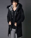 部分的なレザー使い、フード口のリアルファーが存在感を引き立ててくれます。